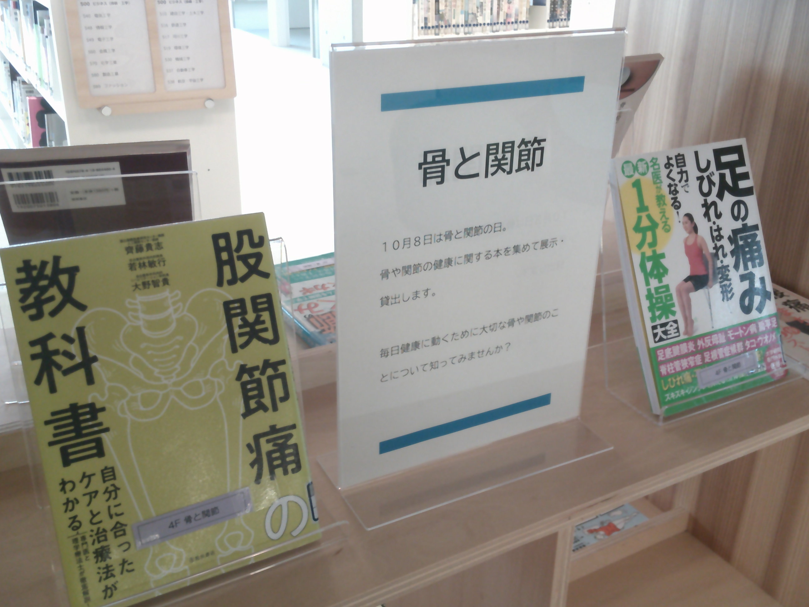 10月8日は骨と関節の日。骨や関節の健康に関する本を集めて展示・貸出します。毎日健康に動くために大切な骨や関節のことについて知ってみませんか?