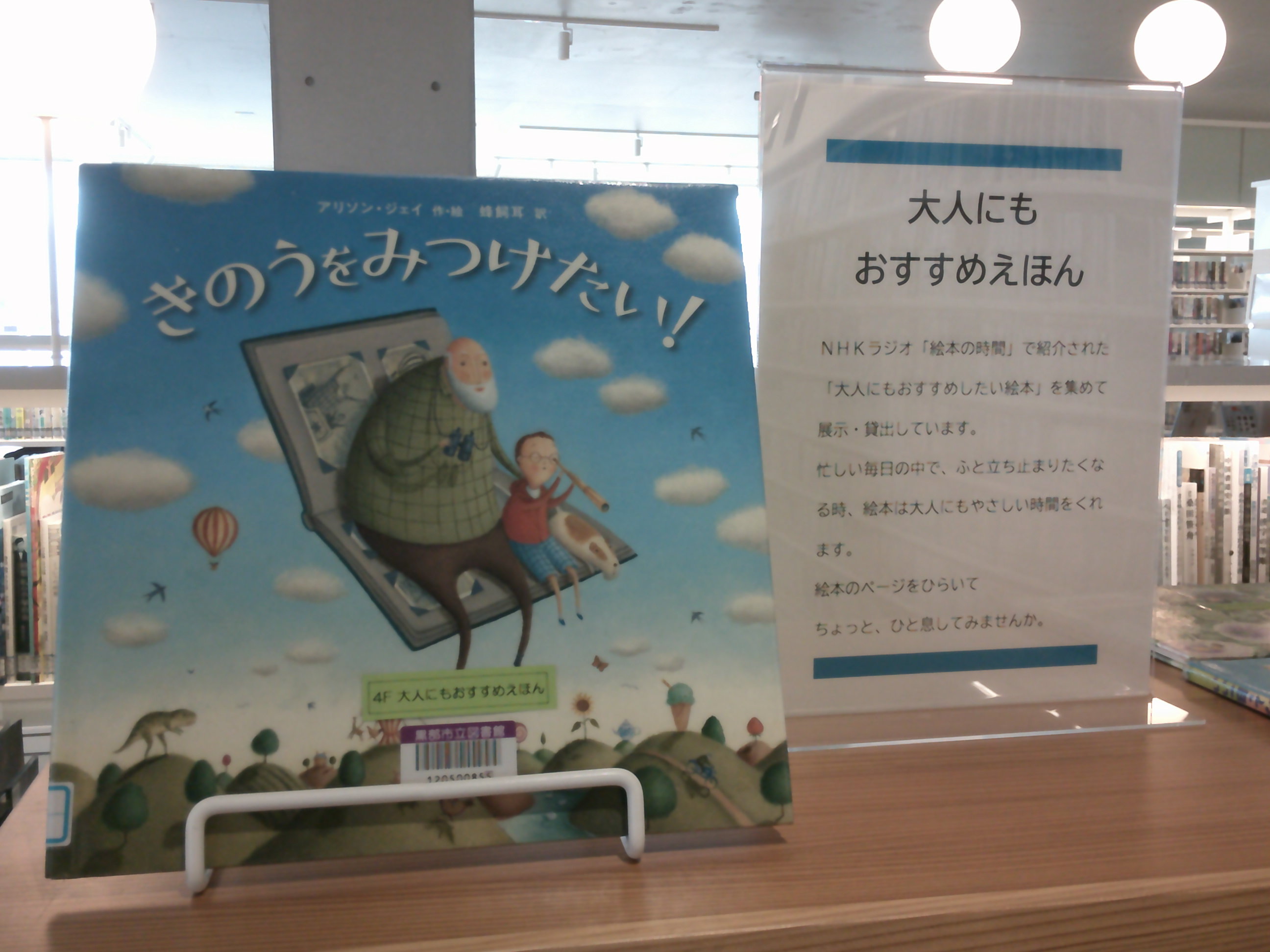 大人にもおすすめえほん NHKラジオ「絵本の時間」で紹介された「大人にもおすすめしたい絵本」を集めて展示・貸出しています。忙しい毎日の中で、ふと立ち止まりたくなる時、絵本は大人にもやさしい時間をくれます。絵本のページをひらいてちょっと、ひと息してみませんか。 場所:4F 担当:N